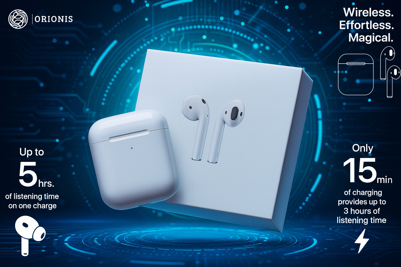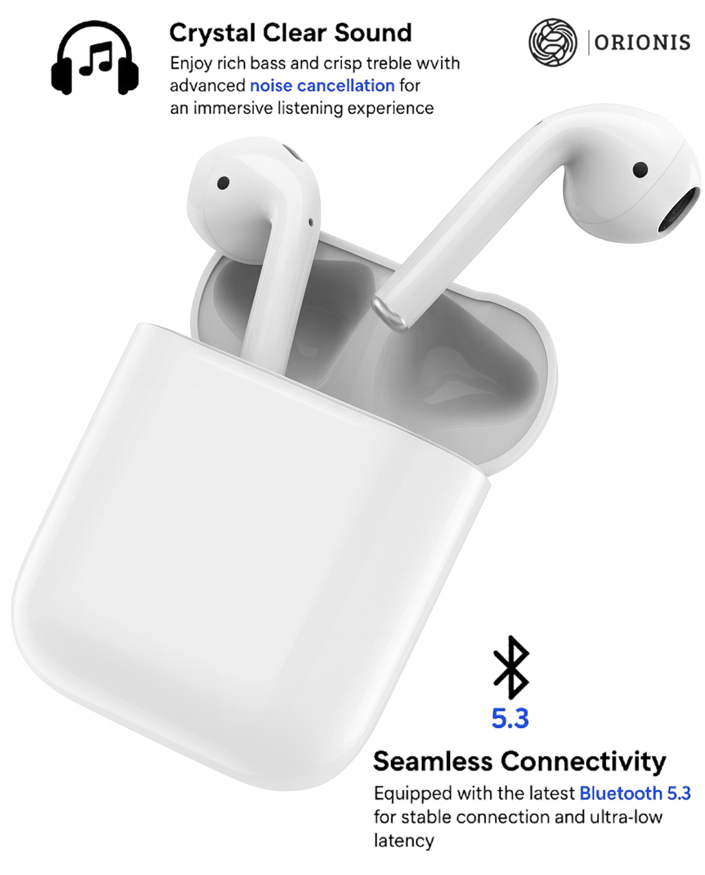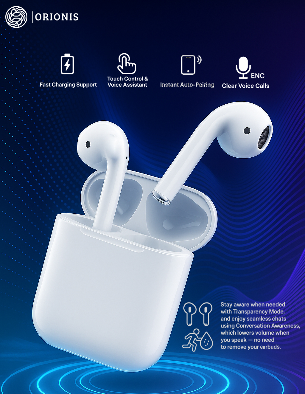 Experience the power of effortless, immersive sound with ORIONIS AirDrops 2 True Wireless Earbuds — your perfect everyday companion for music, calls, and entertainment.